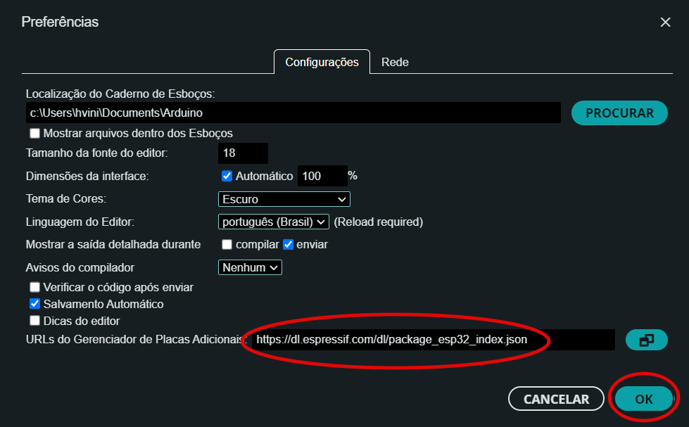 Na janela de preferências, procure o campo “URLs Adicionais de Gerenciador de Placas” e adicione a seguinte URL: